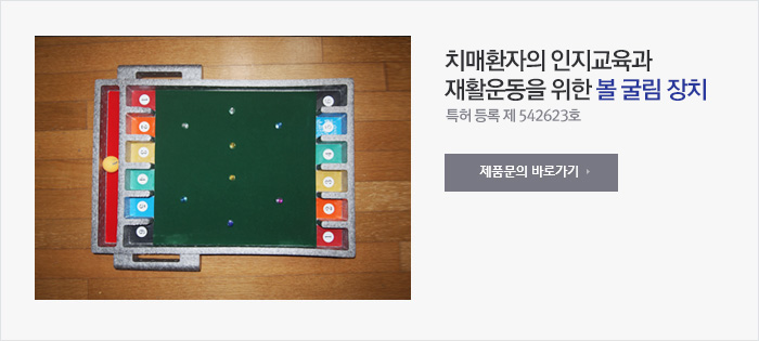치매환자의 인지교육과 재활운동을 위한 볼 굴림 장치는 볼이 구르는 바닥면의 가장자리로부터 연장되어 벽면이 형성된 볼 구름판; 상기 볼 구름판의 벽면 중 서로 마주 보는 두 벽면에 위치하여 볼의 터미널 공간을 형성하는 적어도 하나의 격벽; 및 두 벽면 사이에 위치하여, 볼의 구름을 방해하기 위하여 볼 구름판 바닥면에 설치된 복수개의 장애물을 포함하여 구성된다.